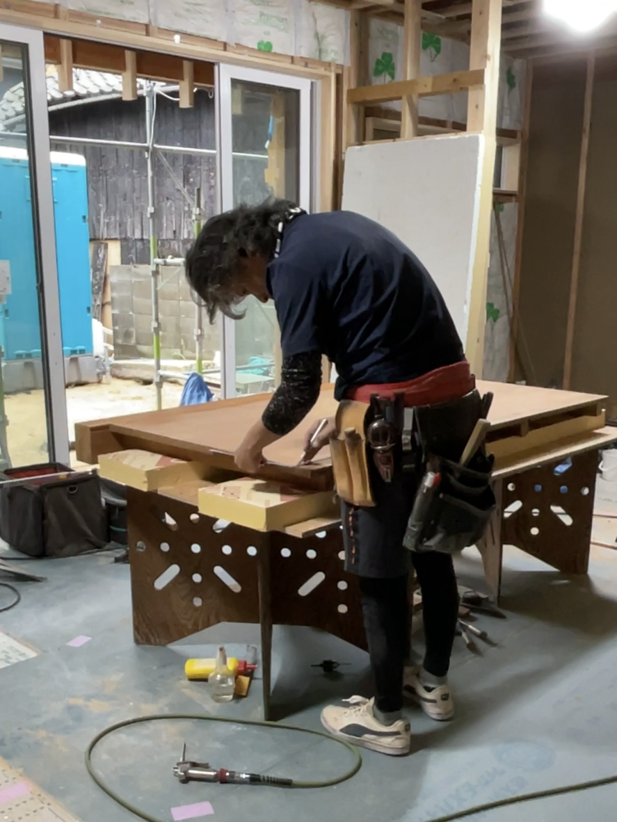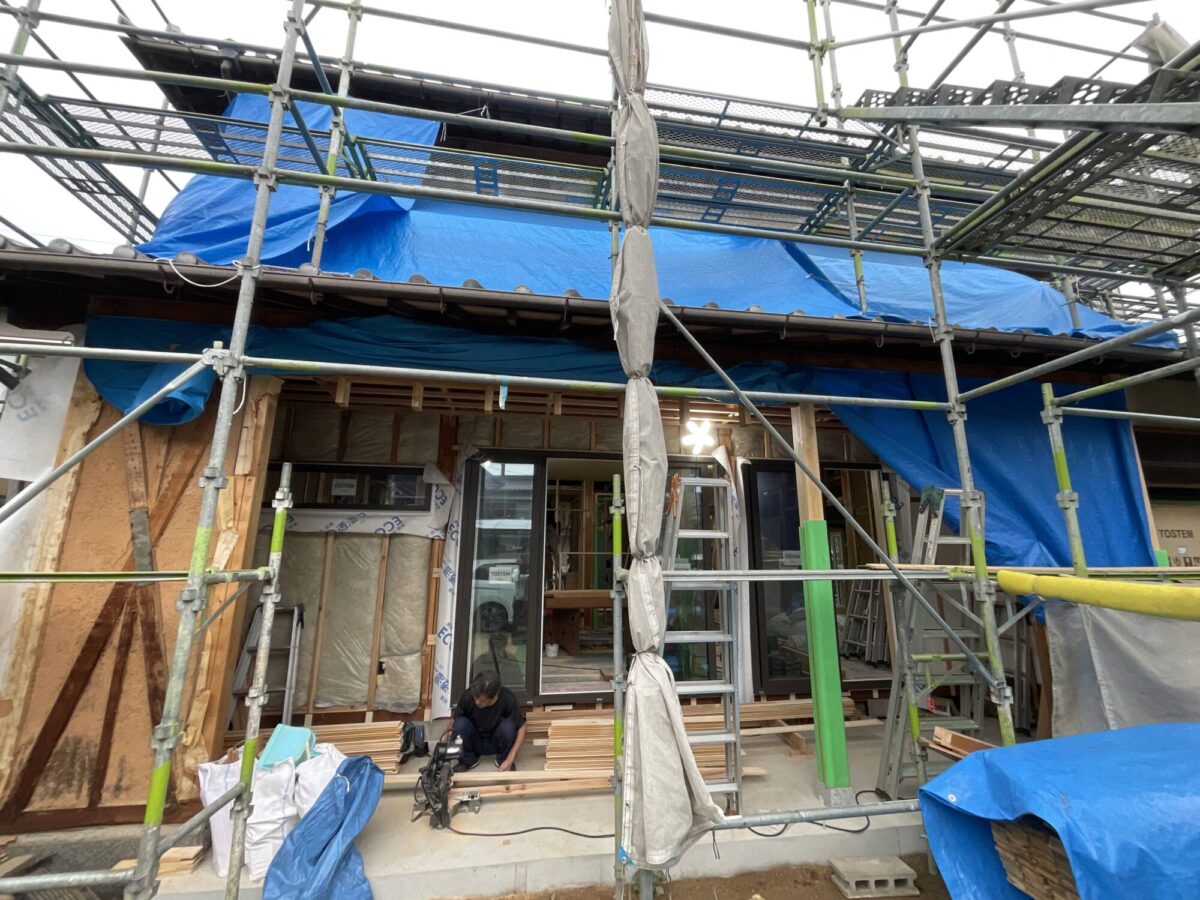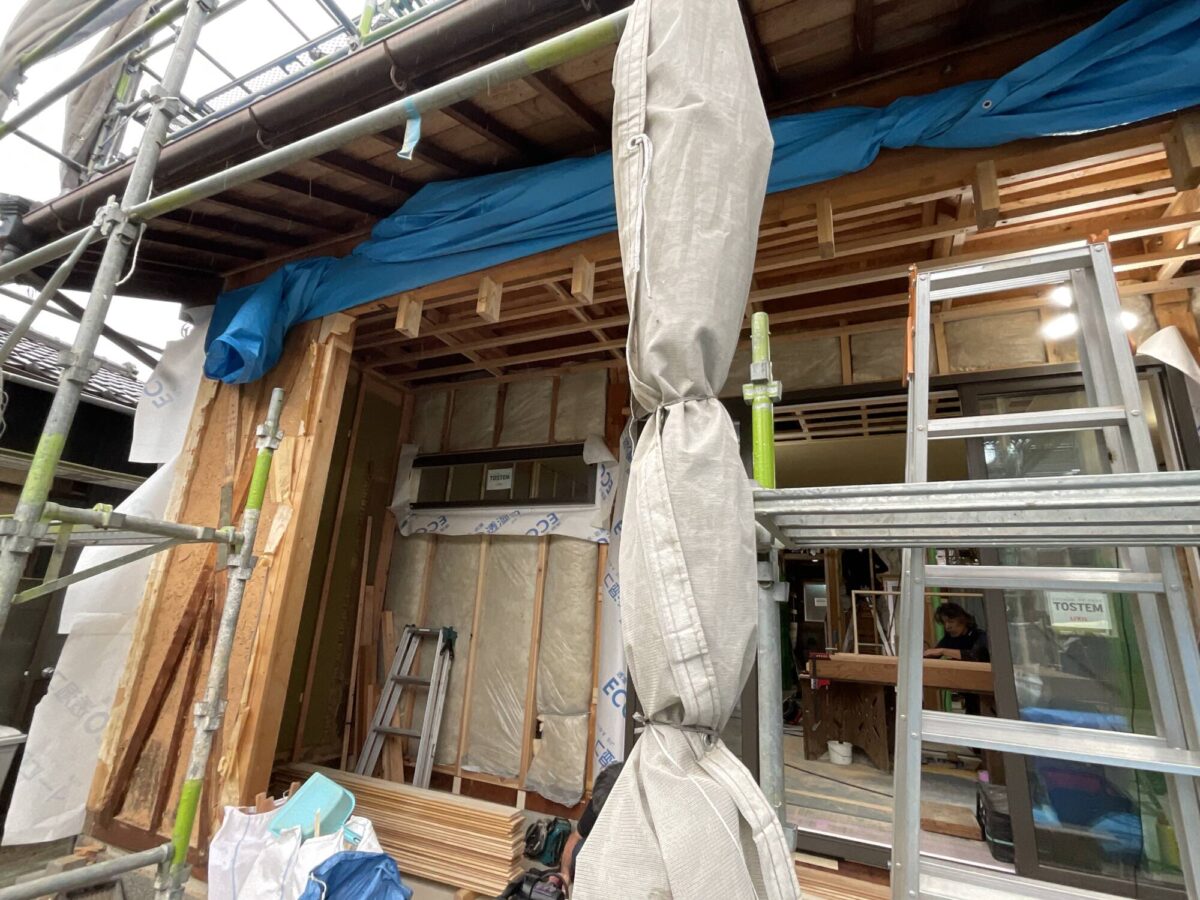 母屋を大規模リフォームして親世帯からお子様世帯へと住み継がれる工事をしています。