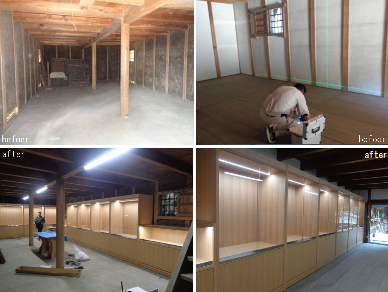今年「2つの蔵を展示室に利用したい」とご依頼をいただきました。ご依頼者様の雛人形など貴重な古美術品のコレクションを展示するというものです。