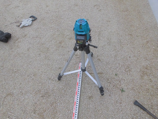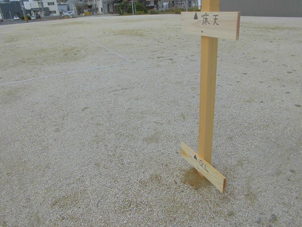 まず、図面の配置図を元に基準点から建物の輪郭に地縄を張っていきます。