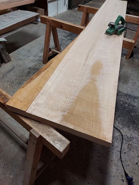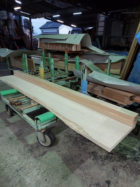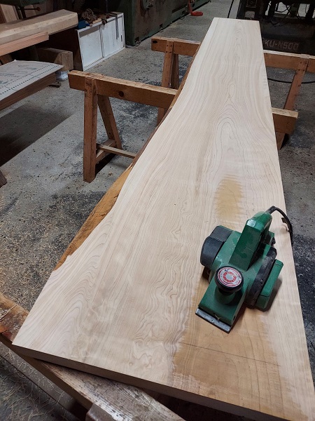 幅広なので、直角2面カンナ盤では全ては削れないため、残った所は電気カンナで加工しました。