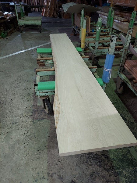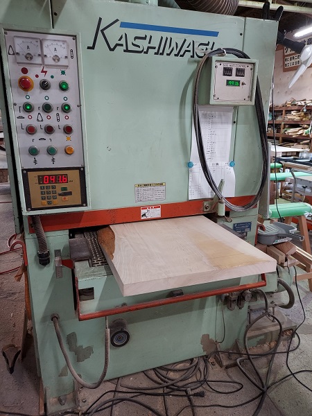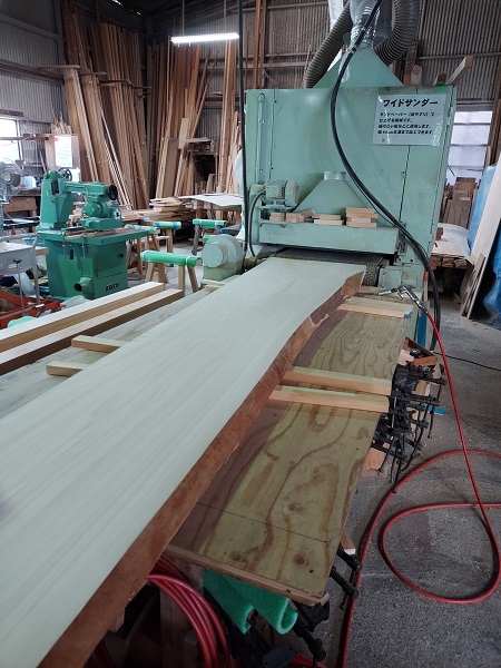 その後、ワイドサンダーで板の裏、表を削り及び仕上げを兼ねて加工します。