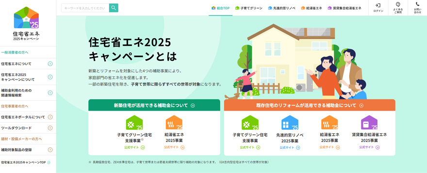 今年も住宅省エネ2025キャンペーン開始されました。公式HPが3/10に公開。