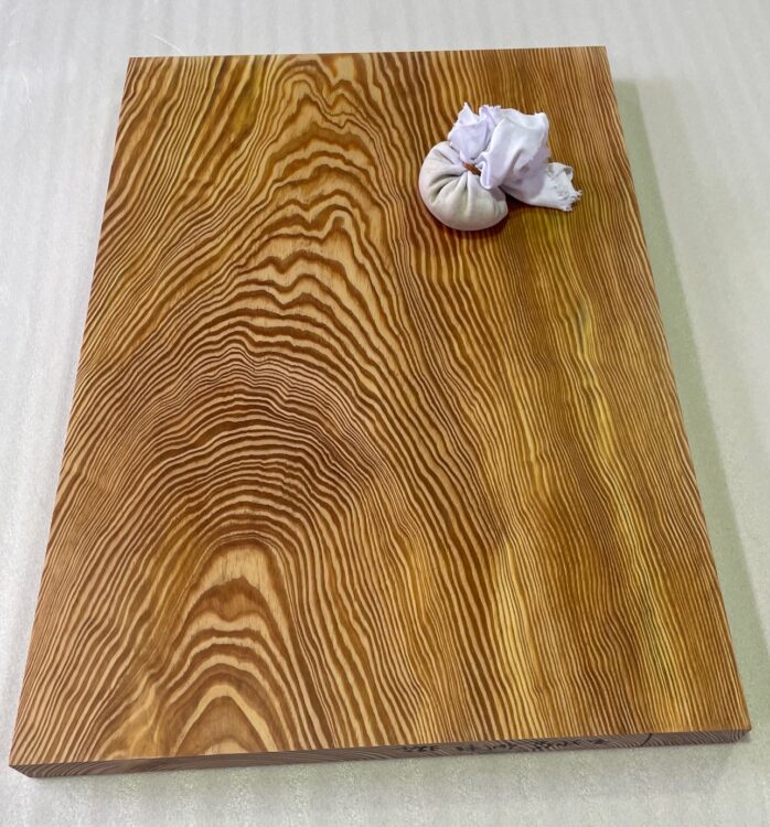 松は肥えている(赤みの濃い物)と、ヤニが出やすいので、仕上げに一手間加えました。