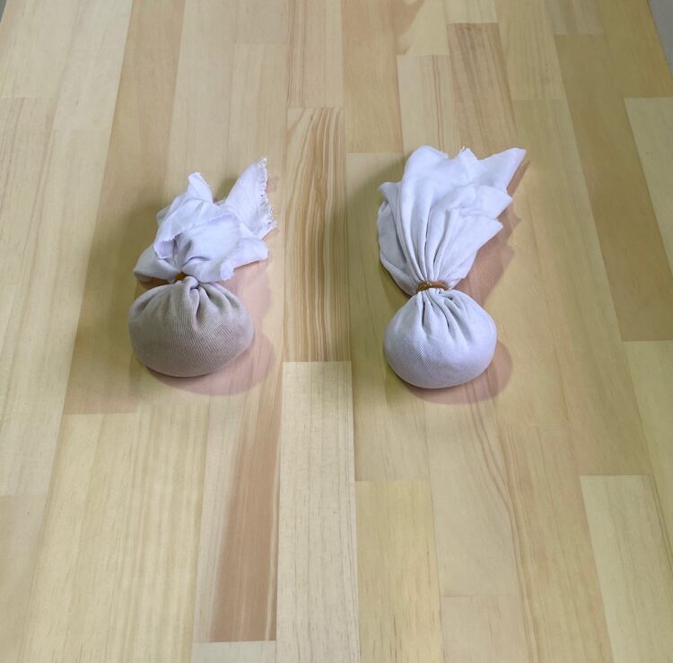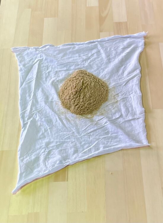 カンナやサンダーで仕上げた後、炒った米ぬかを布でくるんで磨きます。