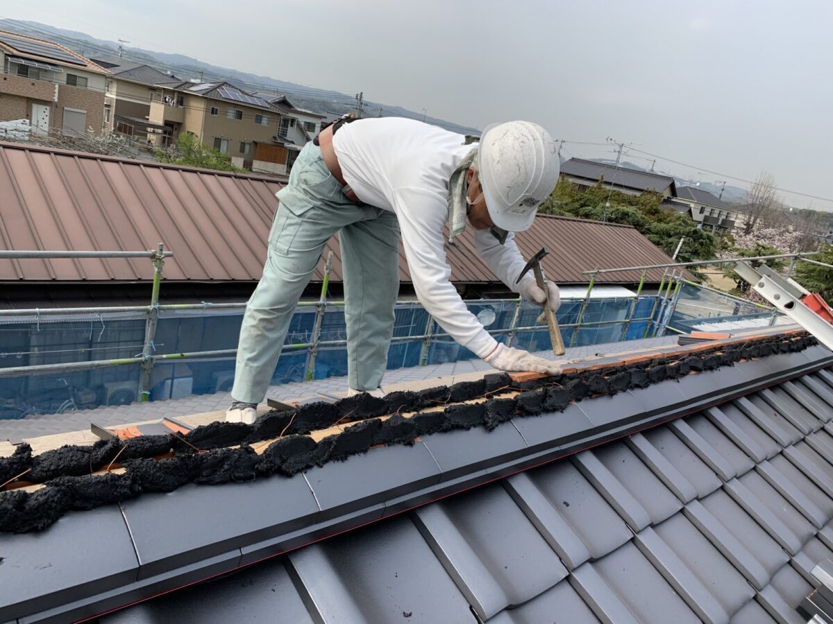 大工さんによる屋根仕舞完了後・屋根瓦葺き・水切類板金工事。