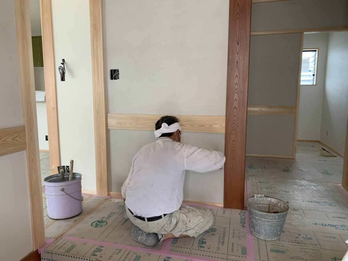 塗り壁左官工事も仕上げ塗りに。