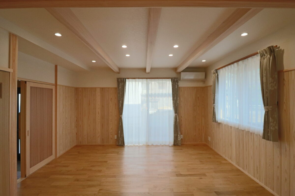 天然木化粧梁の、広々としたLDK。