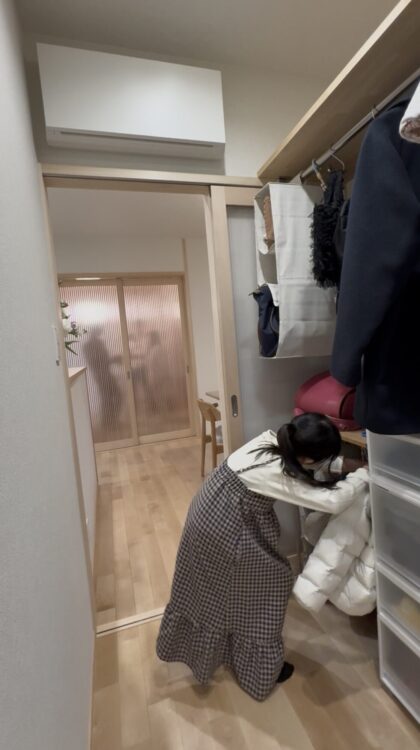 ▲ 手が届く低い位置にハンガーパイプを設けるだけで