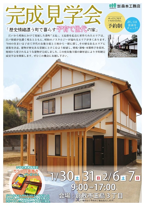 1/30(土)31(日)2/6(土)7(日)の4日間、予約制の完成見学会を開催します★