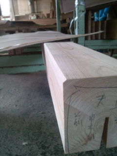 桧を使っています。角を大きく面をとっているのがわかると思いますが、これが角面です。
