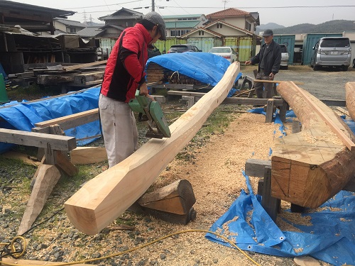 これだけの丸太を刻むのに、全て手仕事で2週間ぐらいかかります。