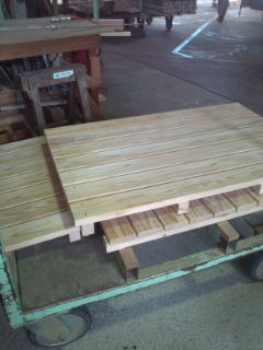 2016.08.29 スノコ スタッフブログ #家づくり 写真は、Y様邸の玄関横、土間に置くスノコの材料です。 今回は、杉の間柱と桧のタルキ材で造りました。 一般に市販されてる物よりも、厚みがあり大変丈夫ですよ。 上の写真は、組み立て風景と、出来上がりのものです。 加工場、川西大工により、丁寧に造られました。(3組) 我が社では、大きさや高さを現場に合わせて造るので、ピタリと収まります。 資材課の三宅でした。