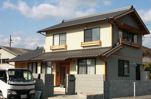 和を感じる住まい #新築 #二階建て #和風 木を活かした意匠性のある住まいが完成しました。玄関は、格天井に皮付ひのき丸太「框」、造付下足収納と大工によって造作された来客をもてなす空間となっています。 「格天井」は昔ながらの日本家屋に見られる意匠的な仕上げです。 リビングダイニング。杉の床板がぬくもりを醸し出します。 建具にも伝統的な意匠を取り入れ風格ある雰囲気が漂います。 床の間と押入のある和室。 家の中心にある階段。 子供部屋。 システムキッチン 洗面化粧台。 システムバス。 トイレ。